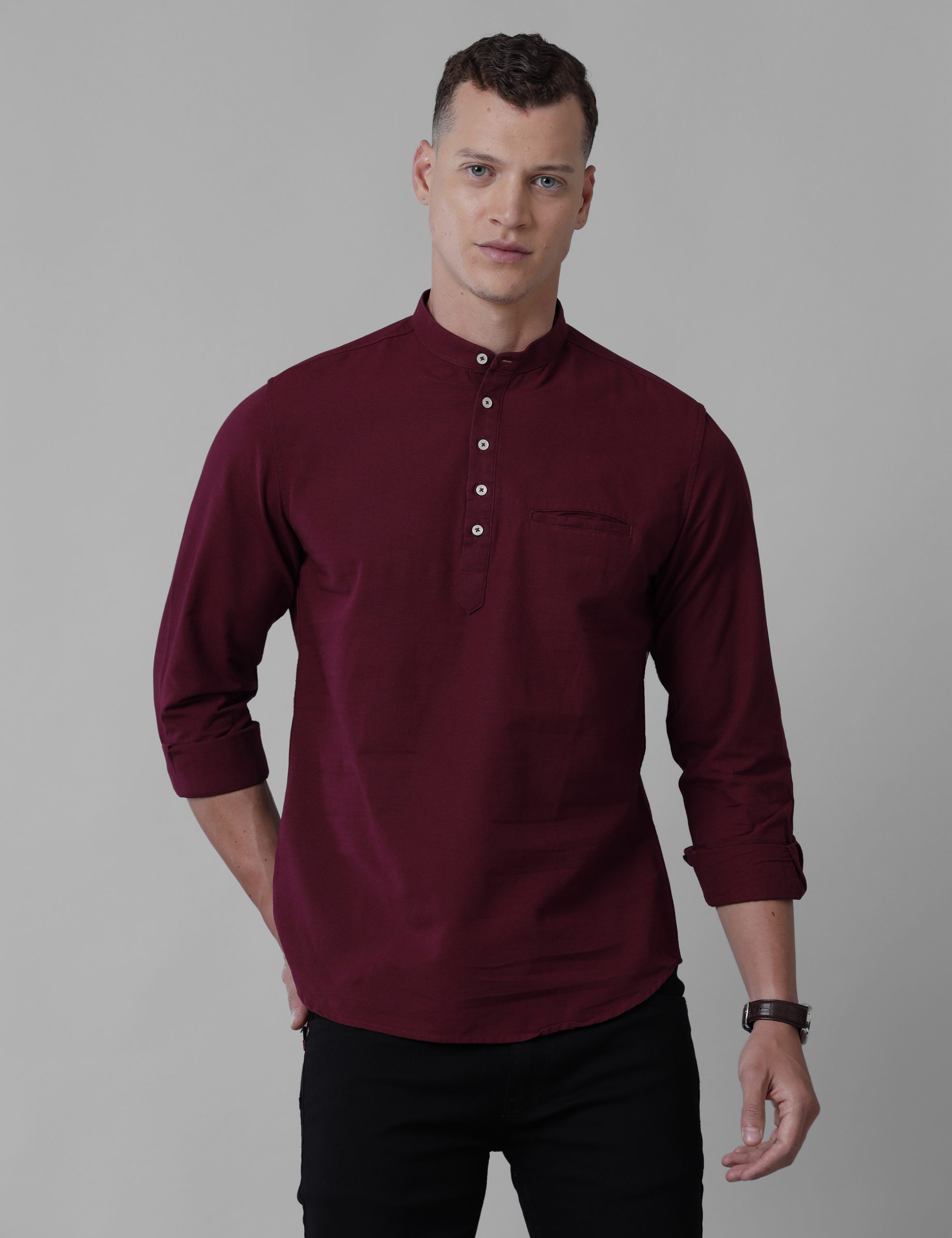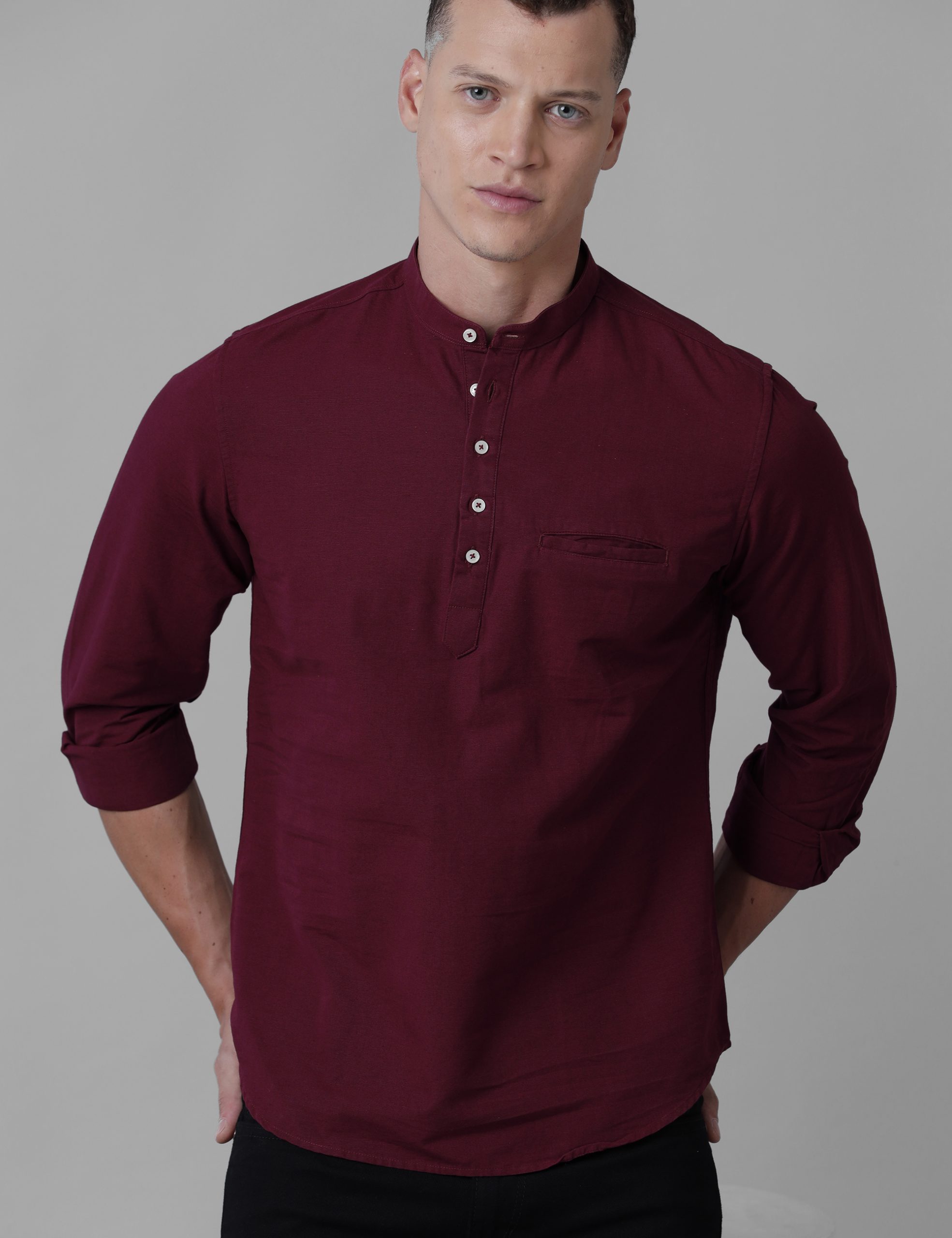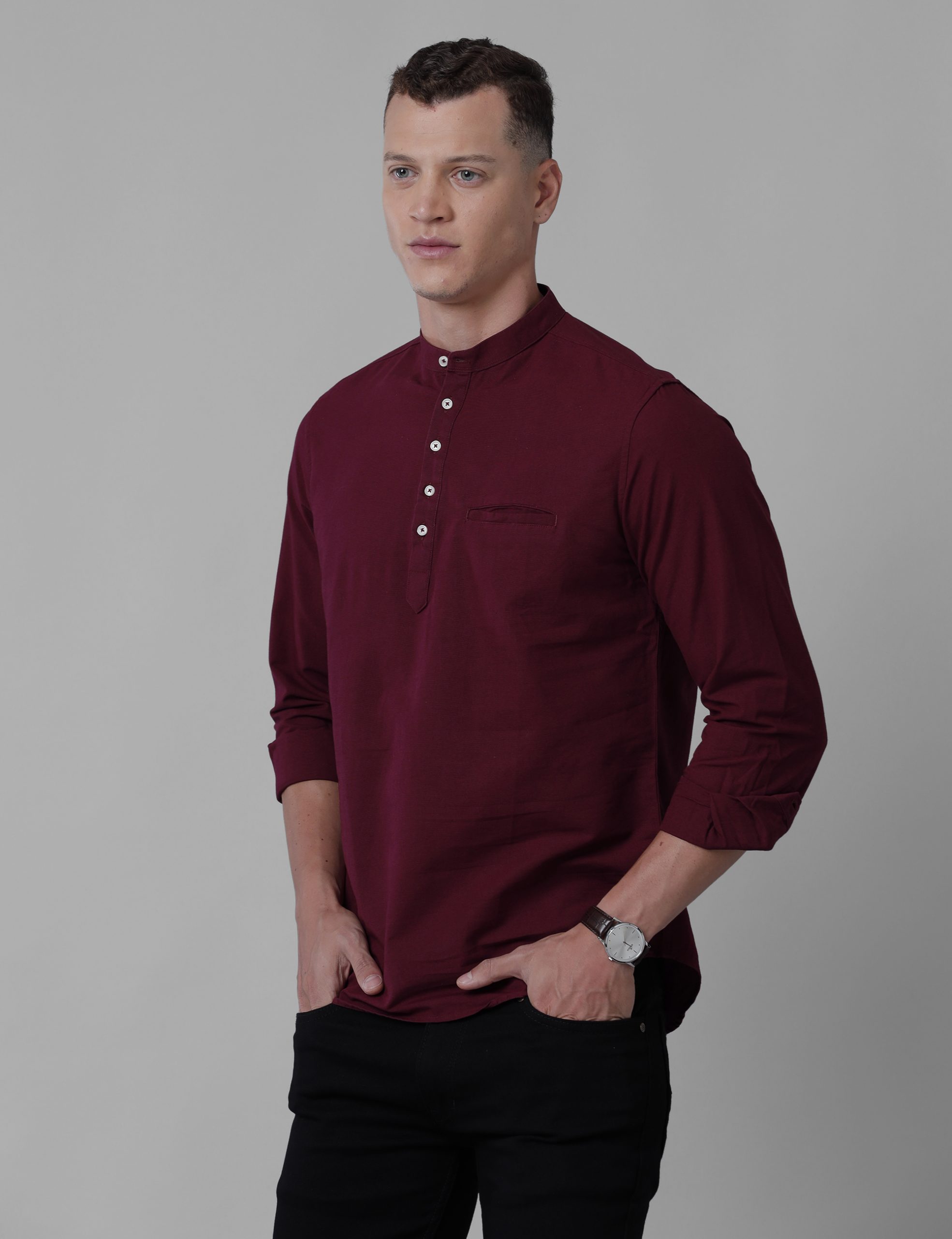 Croydon UK Men’s Maroon Nehru collar kurta – Croydon Fashions – Shirts and Trousers